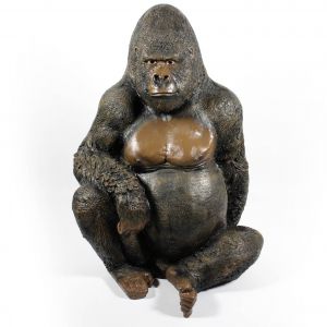 Prachtig beeld van een Gorilla. Lijkt sprekend op de beroemde silverback Bokito. Het beeld is gemaakt van polystone en is 130cm groot.