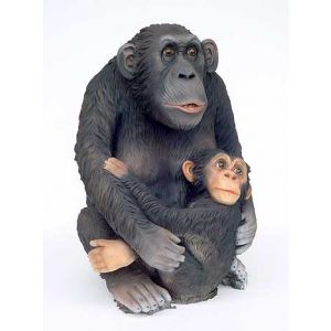 Prachtig beeld van een levensecht lijkende chimpansee. Het beeld is gemaakt van polyresin. Het is met een speciale lak afgewerkt zodat het beeld zowel binnen als buiten ter decoratie kan.